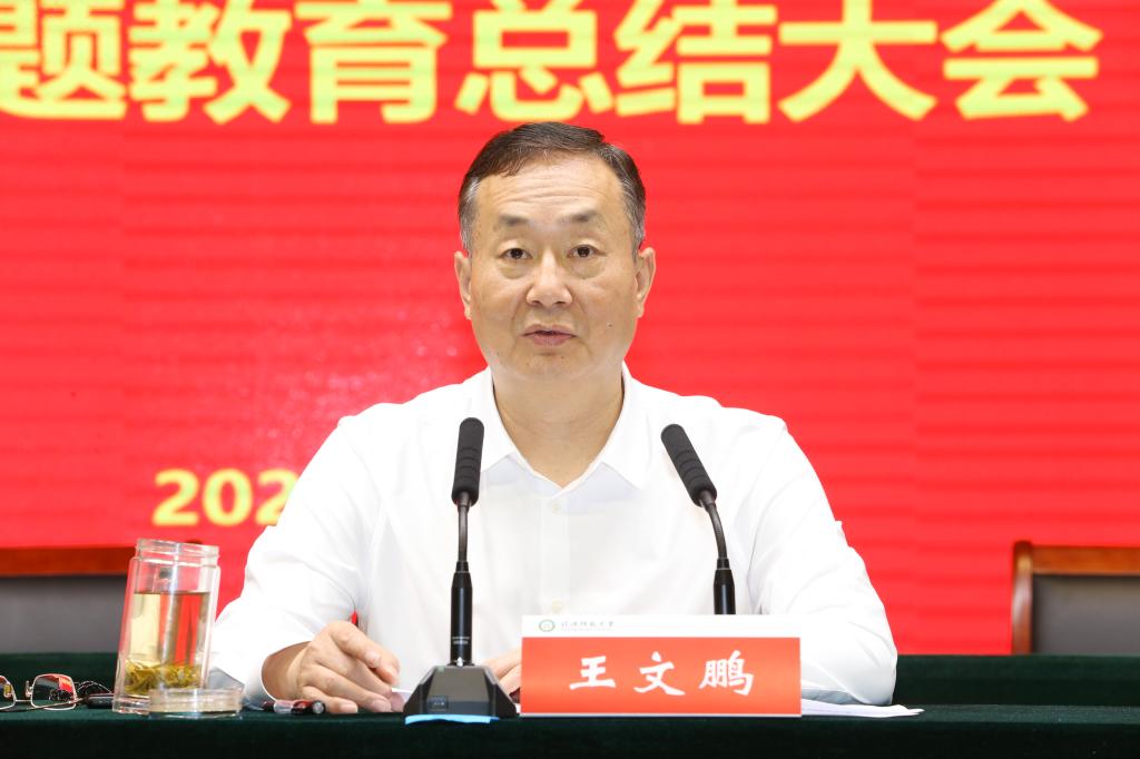 王文鹏在讲话中指出,学校党委坚决贯彻落实习近平总书记关于主题教育的重要讲话和指示批示精神,牢牢把握“学思想、强党性、重实践、建新功”的总要求,全面推动主题教育走深走实。通过主题教育,全校党员干部凝心铸魂筑牢根本取得了新成效,锤炼品格强化忠诚实现了新提升,实干担当促进发展开创了新局面,践行宗旨为民造福彰显了新作为,廉洁奉公树立新风培塑了新形象。